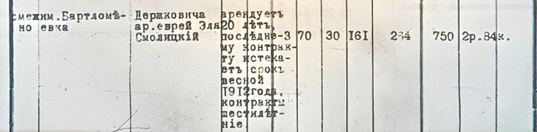 В том же документе я отыскал и вот такую информацию. В соседней Бартломеевке (Бутромеевке) арендовал землю Эля Смолицкий.