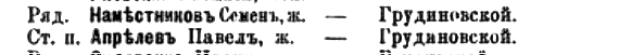 Информация, мягко говоря, противоречивая. То ли Апрелев П.Н. служил управляющим в обоих имениях, то ли это разные люди, то ли предписания банка в то время можно было спокойно игнорировать. И как-то сложно поверить, чтоб вменяемый человек, состоя на довольно-таки неплохой должности и имея 7 детей в составе семьи, добровольно пошел на войну. А вот здесь ещё один Павел Апрелев с Грудиновской волости, который остался на той войне. Может сын или родственник?